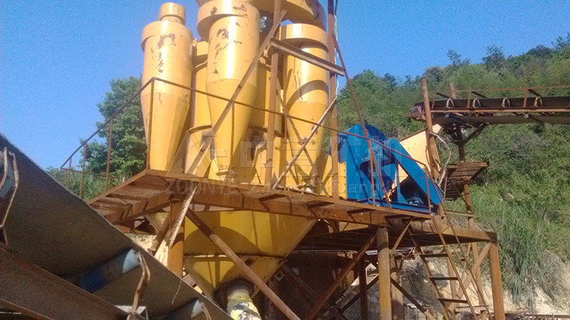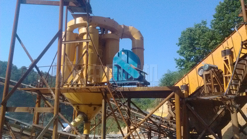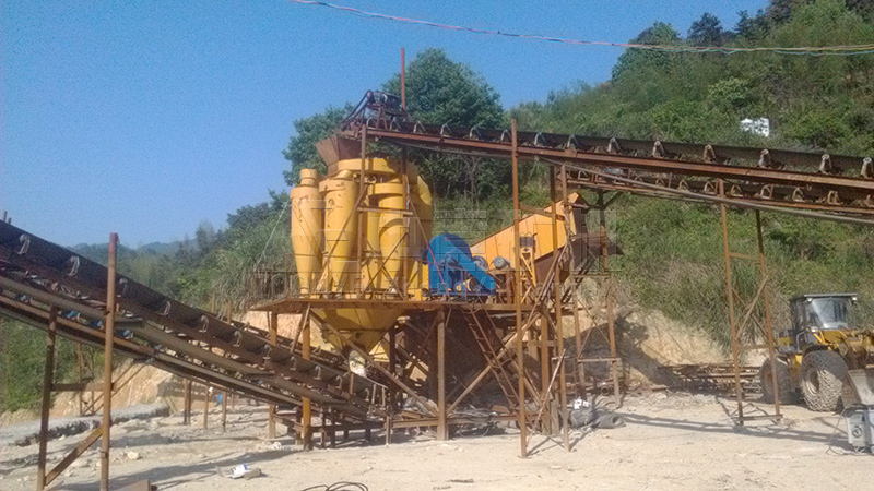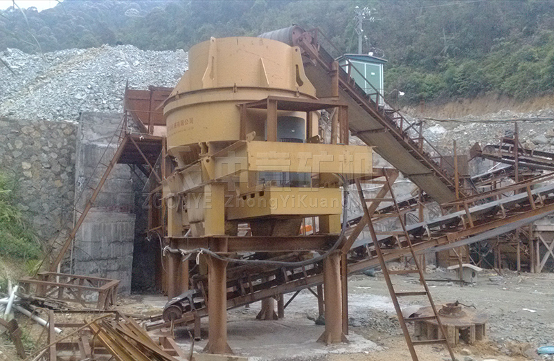 此次制砂设备包括振动给料机、颚式破碎机、冲击式破碎机(制砂机)、圆锥破碎机、输送设备。石料由振动给料机均匀送入粗碎设备颚式破碎机进行初步破碎,然后物料进入圆锥破碎机内细碎,冲击式破碎机进行制砂整形,合格物料由输送设备输出堆放,不合适物料需经过再次破碎筛分,直至合格为止。