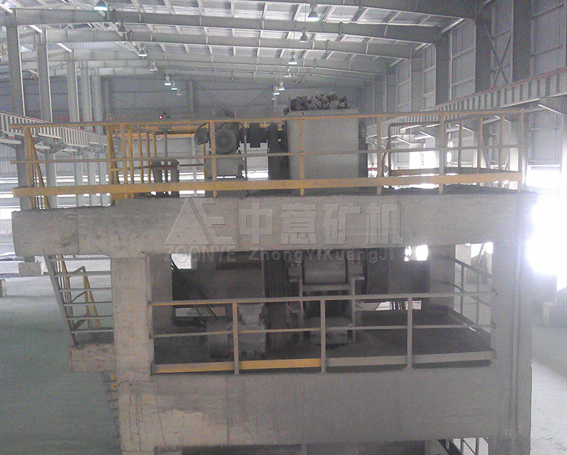 焦炭中间缓冲仓的焦炭由电机振动给料机送至焦炭干燥窑,干燥后,由胶带输送机(耐高温胶带)、斗式提升机送至配料站。在配料站,经振动筛分级后(筛上粒度:5~25mm,筛下粒度:0~5mm)由胶带输送机(可逆)分别送至焦炭块仓及焦炭粉仓。