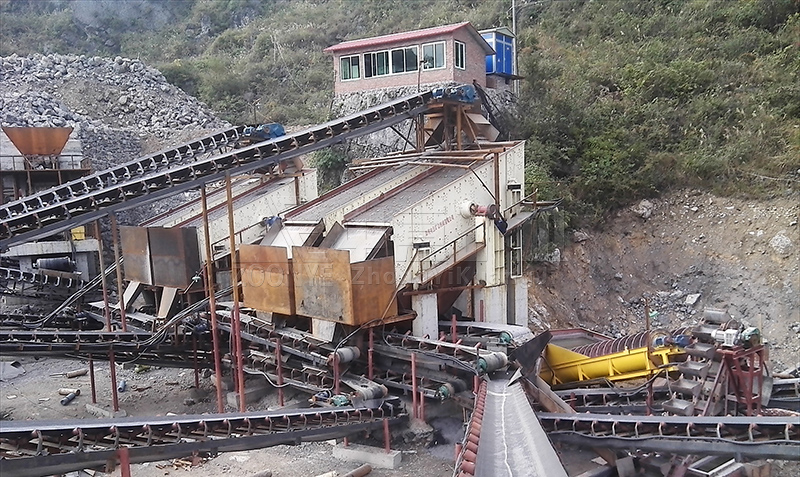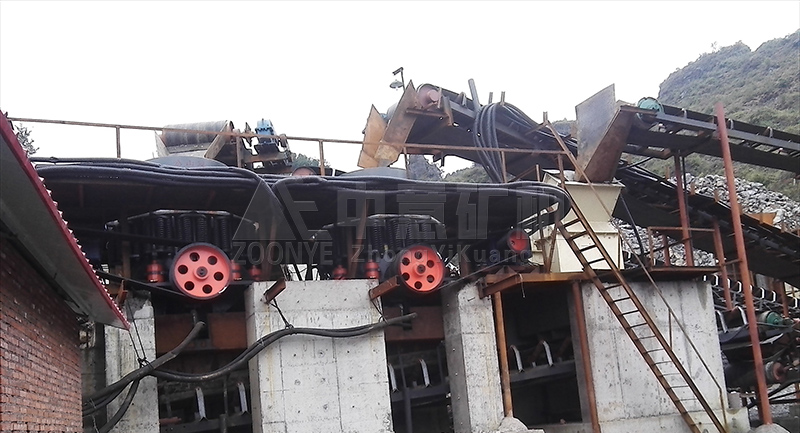 由于花岗岩硬度较高,爆破后的尺寸较大,所以石料经振动给料机均匀给料至一台颚式破碎机进行初破,将1m左右的物料破碎成不超过200mm的料,然后再由弹簧圆锥破进行二次破碎,经由振动筛筛分出0-30mm的成品料,这样的配置不仅降低了设备的磨损率,也为客户节省了成本,提高了整体工作效率。